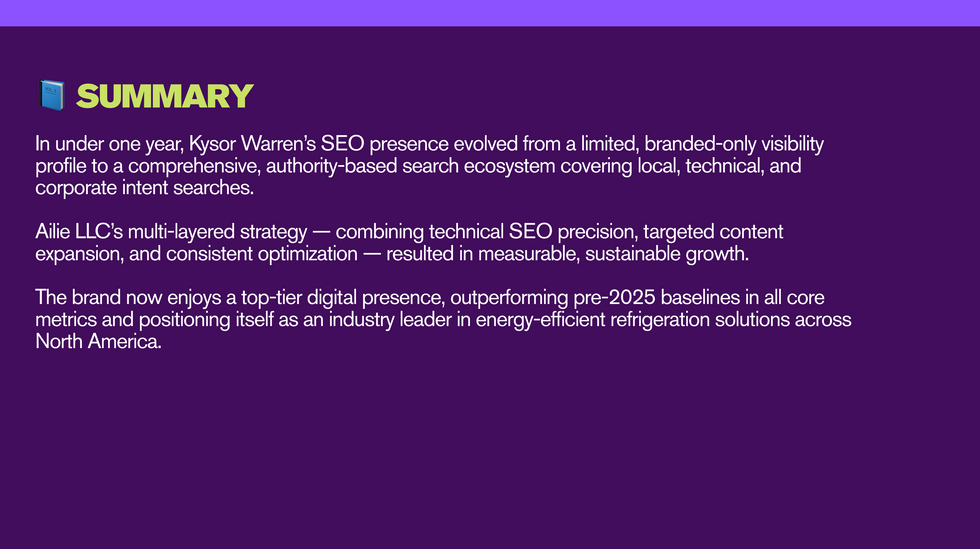 With a highly technical product line and B2B audience, the focus was clear: position Kysor Warren as an industry authority while driving measurable organic growth.